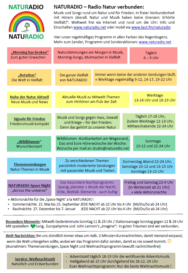 NATURADIO - Programm-Schema und Sendungen: